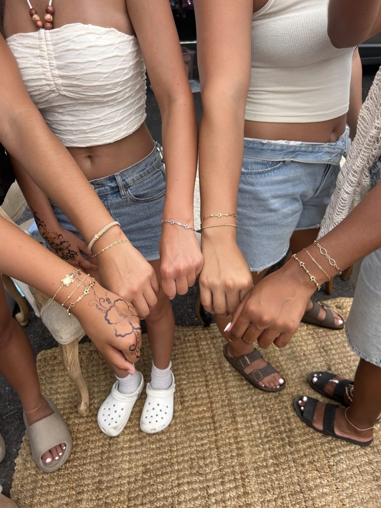 We use high-quality materials that are gentle on the skin yet durable for daily wear. Many of our designs are inspired by bohemian, beachy, and sacred motifs, blending elegance with a playful, free-spirited vibe.